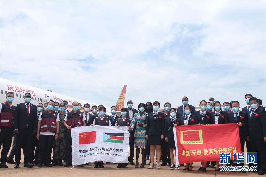 8月19日,中国援南抗疫医疗专家组和医疗队抵达南苏丹首都朱巴。 新华社发(加莱·朱利叶斯 摄)