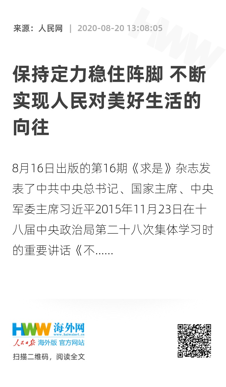 8月16日出版的第16期《求是》杂志发表了中共中央总书记、国家主席、中央军委主席习近平2015年11月23日在十八届中央政治局第二十八次集体学习时的重要讲话《不断开拓当代中国马克思主义政治经济学新境界》。这篇文章通篇闪烁着马克思主义科学、求实的理论光辉,是马克思主义普遍原理与中国具体实践相结合,立足国情形成的从实践到认识、从感性认识到理性认识的重要科学论述,进一步开拓了当代中国马克思主义政治经济学的新境界、新认识。