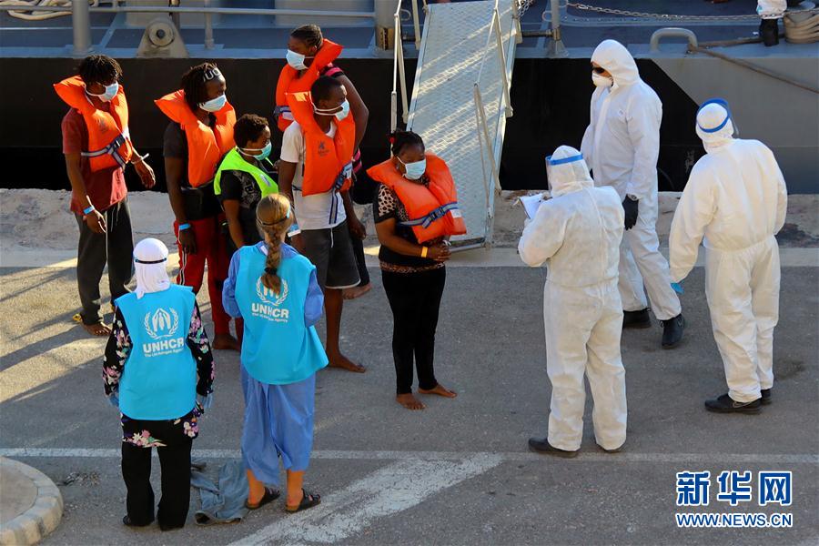 8月20日,获救移民在森格莱阿码头上岸后向工作人员提供个人信息。  新华社发(乔纳森·博格摄)