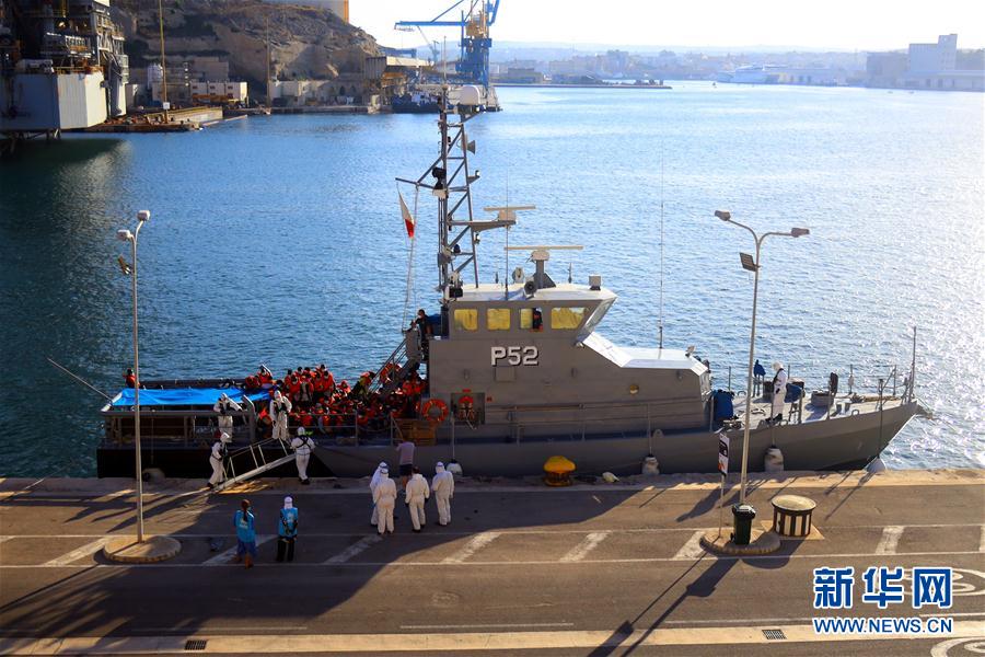 8月20日,马耳他武装部队的巡逻艇营救出118名移民后在马耳他森格莱阿码头靠岸。 新华社发(乔纳森·博格摄)