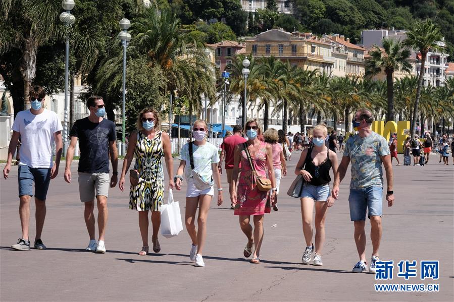 8月20日,人们戴口罩走在法国南部城市尼斯街头。  新华社发(塞尔日·阿乌齐摄)