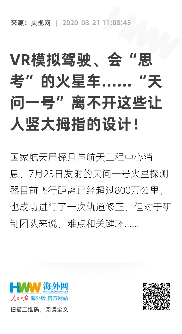 只有火星车成功行驶在火星表面,并传回了探测数据,才意味着此次火星探测任务取得成功。此前只有美国的探测器成功实现了着陆和巡视探测,因此此次天问一号任务还任重而道远。