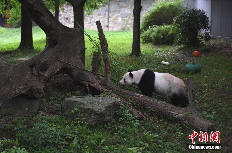 当地时间8月21日下午6点35分,22岁高龄的旅美大熊猫“美香”在华盛顿美国国家动物园产下一只幼崽。这也成为该园近5年来首次迎来熊猫幼崽。图为这只幼崽的爸爸,雄性大熊猫“添添”8月22日在户外活动。中新社记者 陈孟统 摄