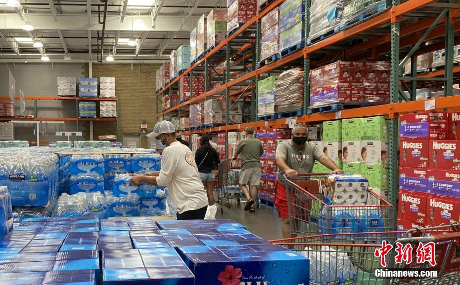 当地时间8月23日,美国国家飓风中心称,目前在墨西哥湾有两个热带气旋正在活动,其中,热带风暴“马尔科”已于23日升级为一级飓风,热带风暴“劳拉”预计将升级为二级飓风。该机构预测“马尔科”和“劳拉”将于24日、27日先后在美国南部沿海地区登陆。图为23日得克萨斯州休斯敦地区一超市内,为应对飓风灾害,当地民众采购瓶装水、纸巾等生活物资。 中新社记者 曾静宁 摄