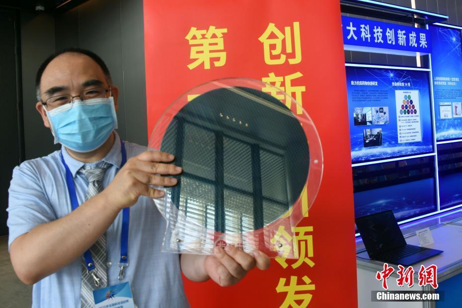 8月23日,中国2020年全国科技活动周暨北京科技周启动式,通过视频连线在北京主会场和湖北武汉分会场同步举行,今年活动周主题为“科技抗疫、创新驱动”。图为上海兆芯集成电路有限公司研发的一款国产28nm工艺处理器晶圆产品,在启动式上亮相展示。中新社记者 孙自法 摄