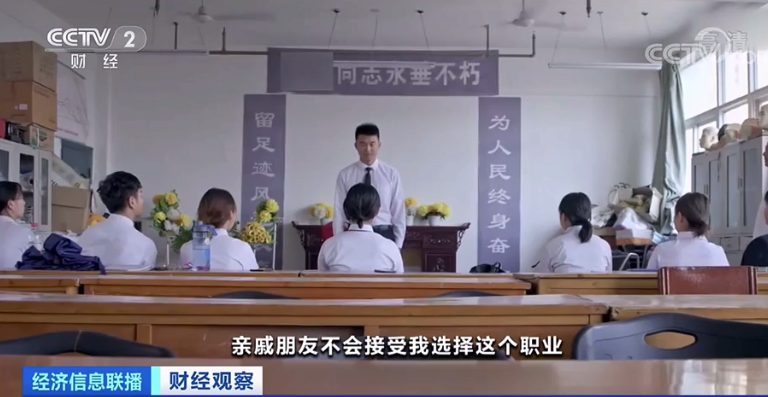 去年9月,38名新生进入安徽城市职业管理学院学习殡葬专业。该校也是安徽省首个、全国第五个开设殡葬专业的高校。校方表示,原本还担心这个专业会很冷门,没想到第一届就招到了38名新生,远高于最初30人的计划招生人数。校方表示,目前殡葬专业人才很紧俏,收入也相对较高。