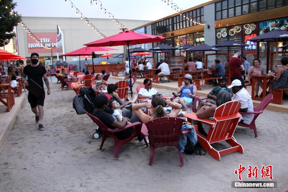 当地时间8月23日,加拿大多伦多市中心一处露天餐吧吸引顾客来此享受夏日周末。这处因防范疫情而由停车场改造而成的露天餐吧拥有80张6人餐台,号称目前多伦多最大的户外餐饮区,近来已成为当地一处“网红”休闲地。 中新社记者 余瑞冬 摄