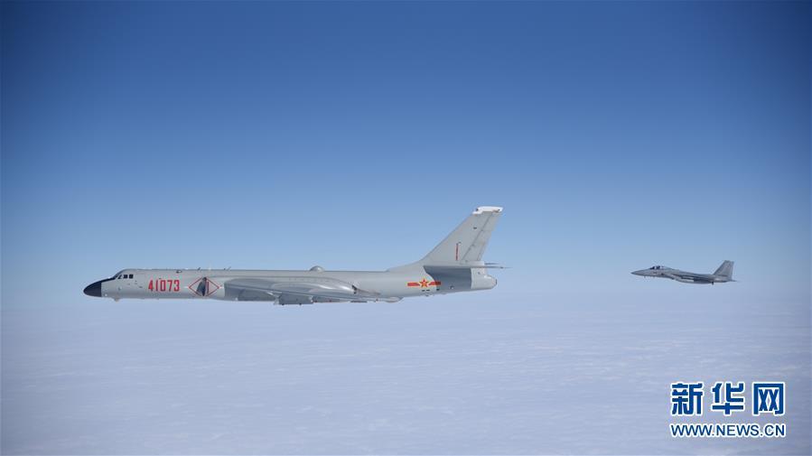 空军航空兵某师轰-6K战机巡航南海(2017年11月23日摄)。 新华社发(王国松 摄)