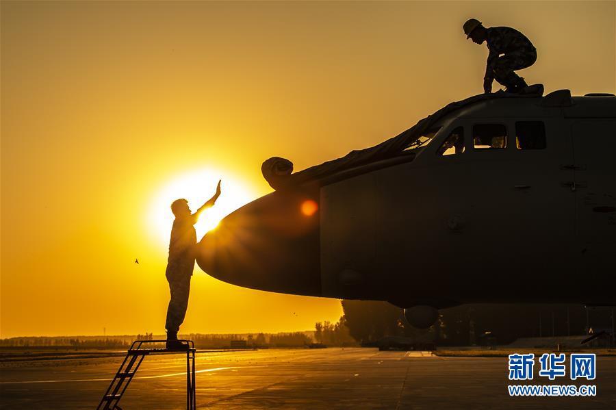 空军航空兵某师官兵为执行跨昼夜飞行训练任务的轰-6K战机做起飞前准备(2019年9月23日摄)。 新华社发(杨瑞康 摄)