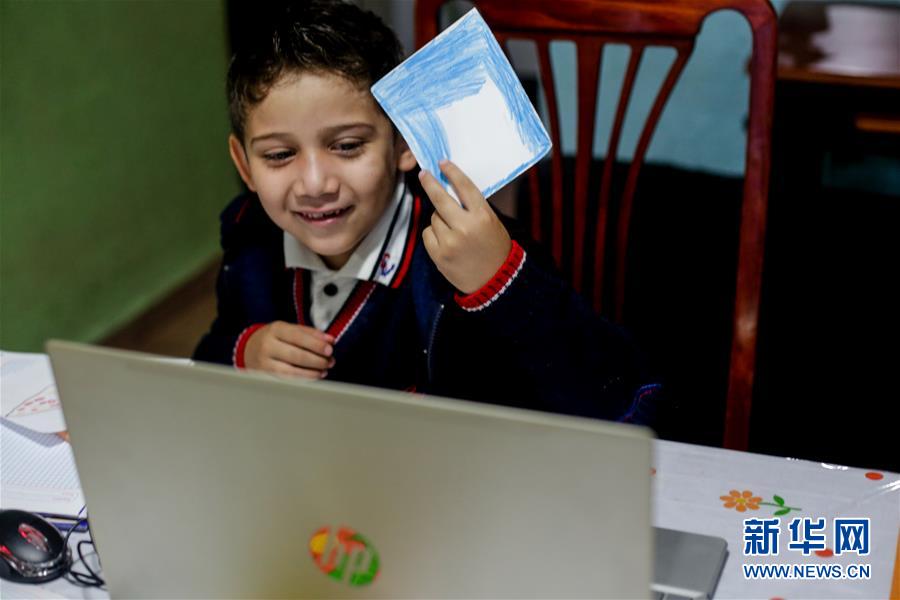 8月24日,在墨西哥墨西哥州,7岁的塞萨尔·巴斯克斯在电脑前向同学和老师展示自己的绘画作品。 墨西哥学校的2020-2021学年于当日开学,受疫情影响,目前课程基本以在线方式进行。 新华社发(弗兰西斯科·卡涅多 摄)