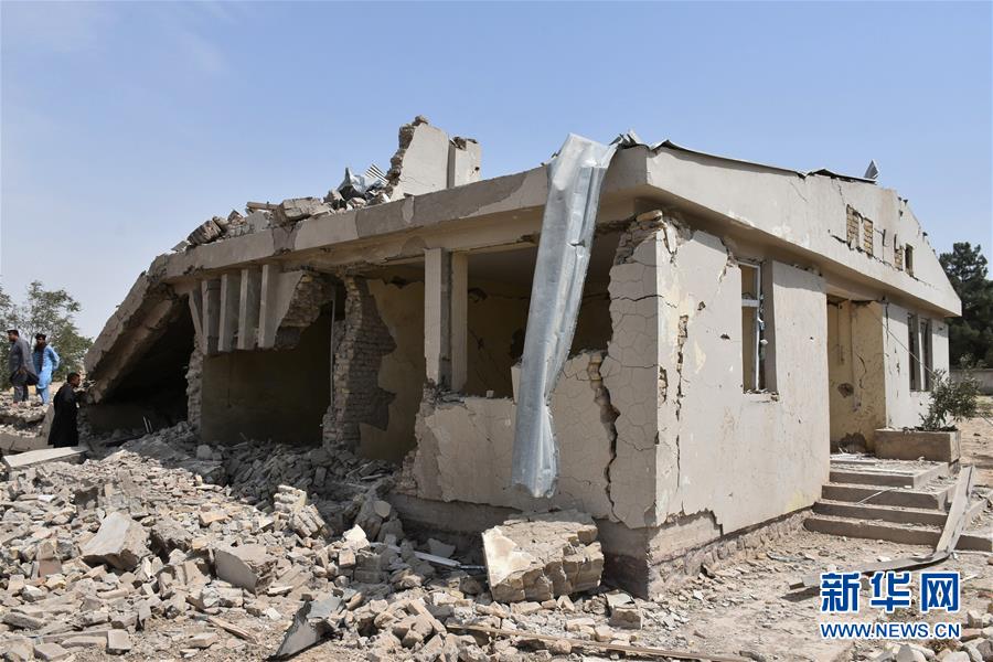 8月25日,在阿富汗巴尔赫省巴尔赫地区,人们查看在汽车炸弹袭击事件中损毁的房屋。新华社发(卡瓦·巴沙拉特摄)