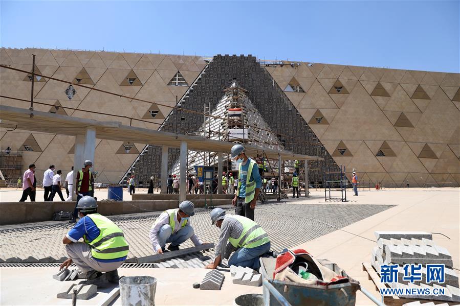 8月25日,工人们在埃及吉萨大埃及博物馆的建筑工地工作。 埃及旅游和文物部长阿纳尼8月24日发表声明说,自7月1日埃及恢复国际航班以来,胡尔加达、沙姆沙伊赫和马特鲁等旅游胜地已累计接待超过12万名外国游客。 新华社发(艾哈迈德·戈马摄)
