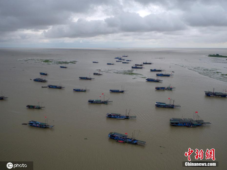 8月26日,受强台风“巴威”影响,江苏淮安洪泽湖刮起5级大风,船舶在洪泽区港口内避风。图片来源:ICphoto