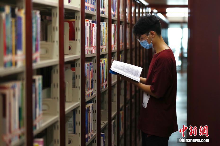 图为北京化工大学学生在图书馆借阅图书。 中新社记者 富田 摄