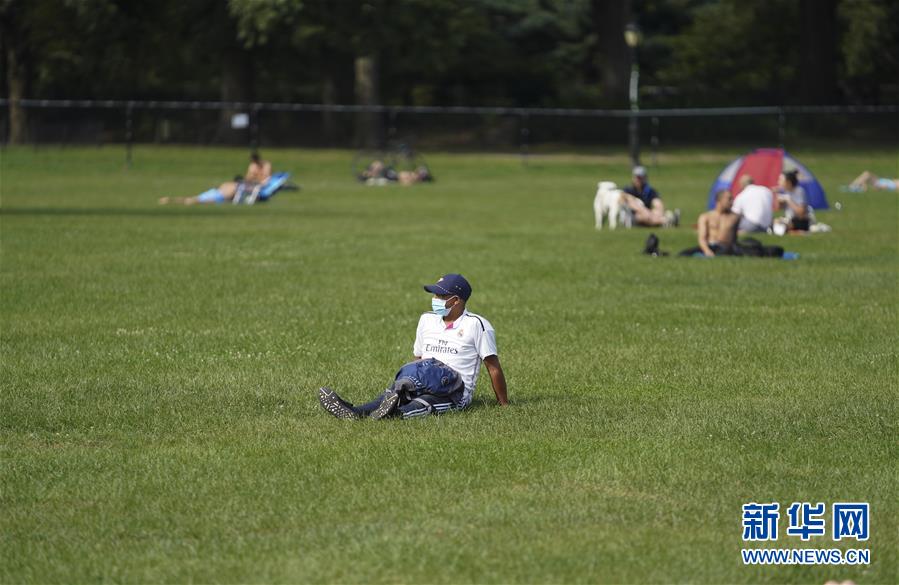 8月26日,人们在美国纽约中央公园的草坪上休闲。 新华社记者 王迎 摄
