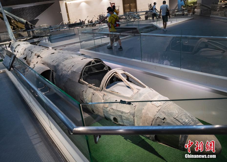 8月27日,市民在位于北京的中国人民革命军事博物馆参观上世纪被击落的美制U-2高空侦察机残骸展品。中新社记者 侯宇 摄