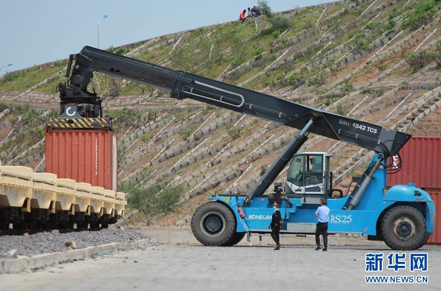 8月26日,在位于埃塞俄比亚首都亚的斯亚贝巴郊外的莫角旱港,中方和埃塞员工监督铁路货运卸车作业。 在新冠疫情之下,由中国公司承建的亚吉铁路的集装箱运输、散杂货运输等依然在有序进行。 由中国企业采用全套中国标准和中国装备建造的非洲第一条跨国现代电气化铁路——亚吉铁路于2018年1月正式投入商业运营。 新华社发(唐勇成摄)