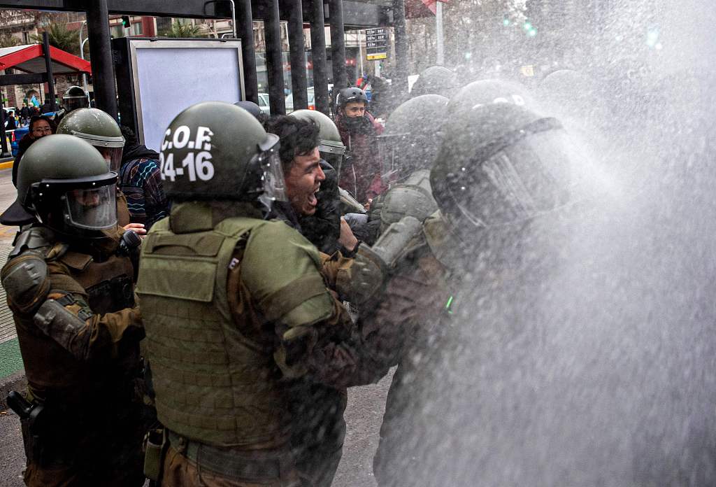 智利民众示威抗议政府抗疫不力 与防暴警察冲突