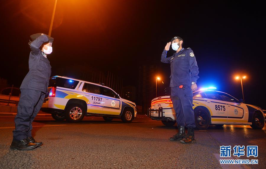 8月28日晚,科威特内政部组织儿童在哈瓦利省的一条高速公路上向执行宵禁任务的警察致敬。 科威特政府决定从8月30日凌晨3时开始取消已实施数月的宵禁。但同时,政府也决定禁止在公共以及私人场所举行一切宴会、招待会和聚会,并且禁止举行葬礼,直至另行通知为止。 新华社发(阿萨德摄)