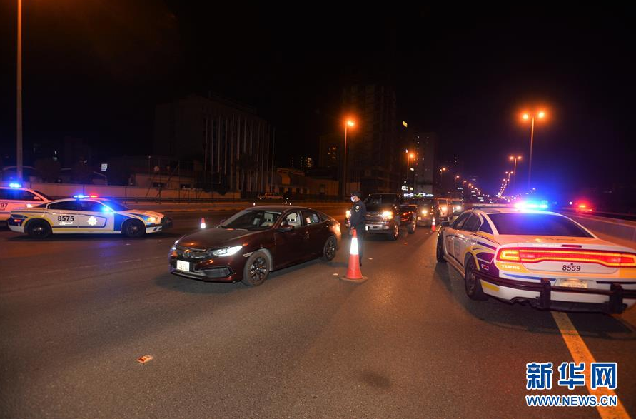 8月28日晚,在科威特哈瓦利省一条高速公路上,警察在宵禁时间内检查过往车辆。 科威特政府决定从8月30日凌晨3时开始取消已实施数月的宵禁。但同时,政府也决定禁止在公共以及私人场所举行一切宴会、招待会和聚会,并且禁止举行葬礼,直至另行通知为止。 新华社发(阿萨德摄)