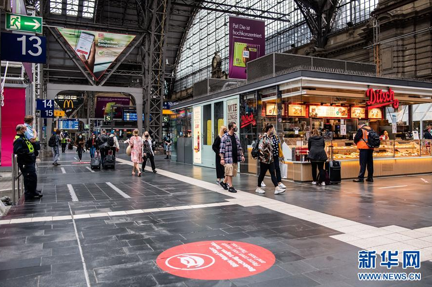 这是8月29日在德国法兰克福的火车站内拍摄的戴口罩的民众。 7月末以来,随着大批境外度假人员归国,德国疫情出现强势反弹,每日新增病例从1000例以下一度增至2000多例。德国总理默克尔8月27日与各联邦州州长召开视频会议,并决定调整新冠防疫措施,加大对不遵守防疫规定者的处罚力度,以应对夏末的疫情反弹势头。 新华社发(凯文·福格特摄)