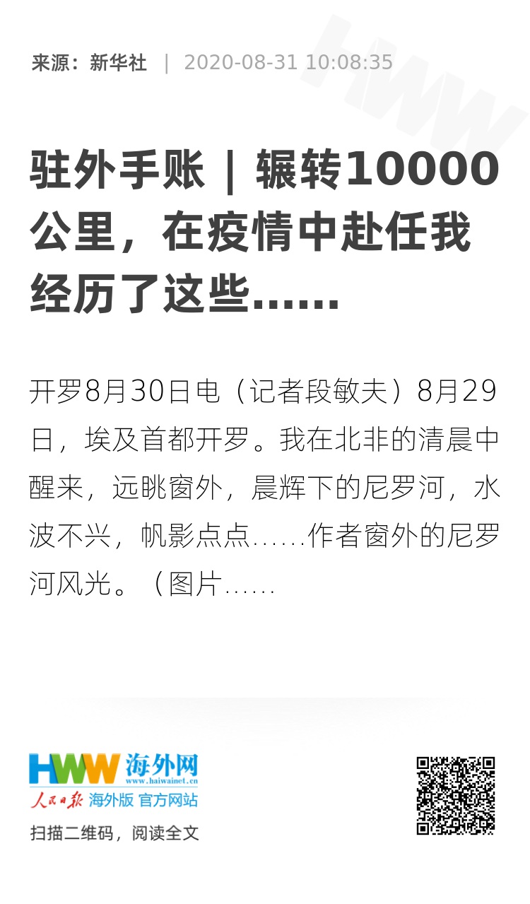 拉开窗帘,尼罗河一如几千年来在午夜静静流淌。在2020这不平常的一年,她将带着梦和希望,流向远方。(编辑:周啸天、金正;视频:段敏夫)