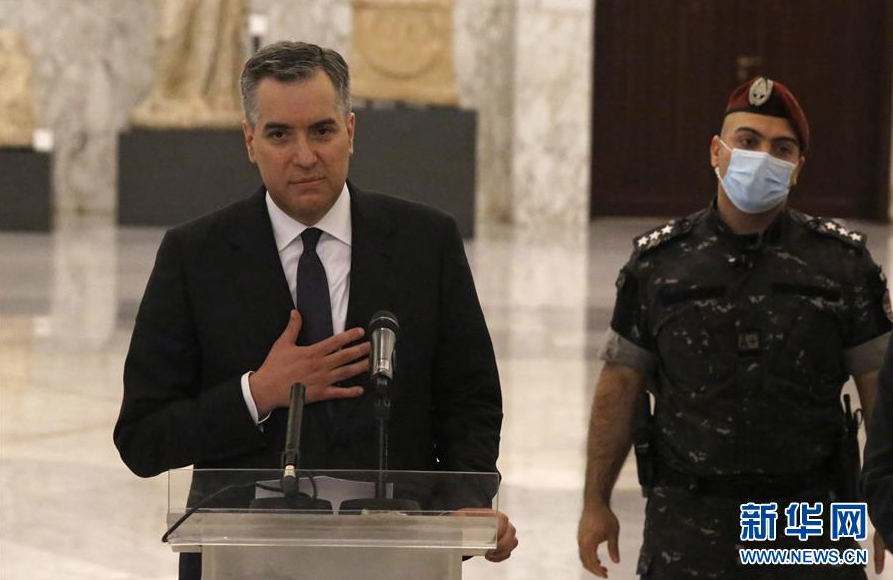 8月31日,黎巴嫩新总理穆斯塔法·阿迪卜在贝鲁特东南的总统府出席记者会。新华社发(比拉尔·贾维希摄)