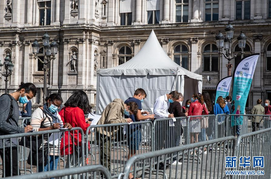 8月31日,人们在法国巴黎市政厅广场前排队等待接受免费新冠病毒检测。 自8月31日起,巴黎将设立多处免费的新冠病毒检测中心,以加大检测力度。法国新冠确诊病例数近来增势迅猛,疫情各种统计指标全面回弹。面对疫情反扑,法国政府再度收紧防疫措施,尽一切努力避免实施完全封禁措施。 新华社发(奥雷利安·莫里萨尔摄)