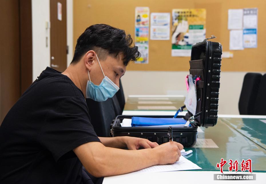 9月1日,代办日本签证的机构人员在位于北京的日本驻华大使馆签证处填写相关材料准备递交。中新社记者 侯宇 摄