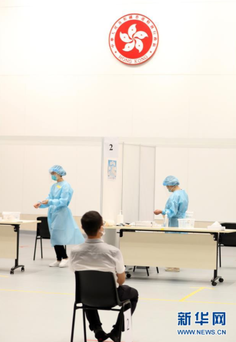 9月1日,在特区政府总部检测点,香港市民等待检测。新华社记者 李钢 摄