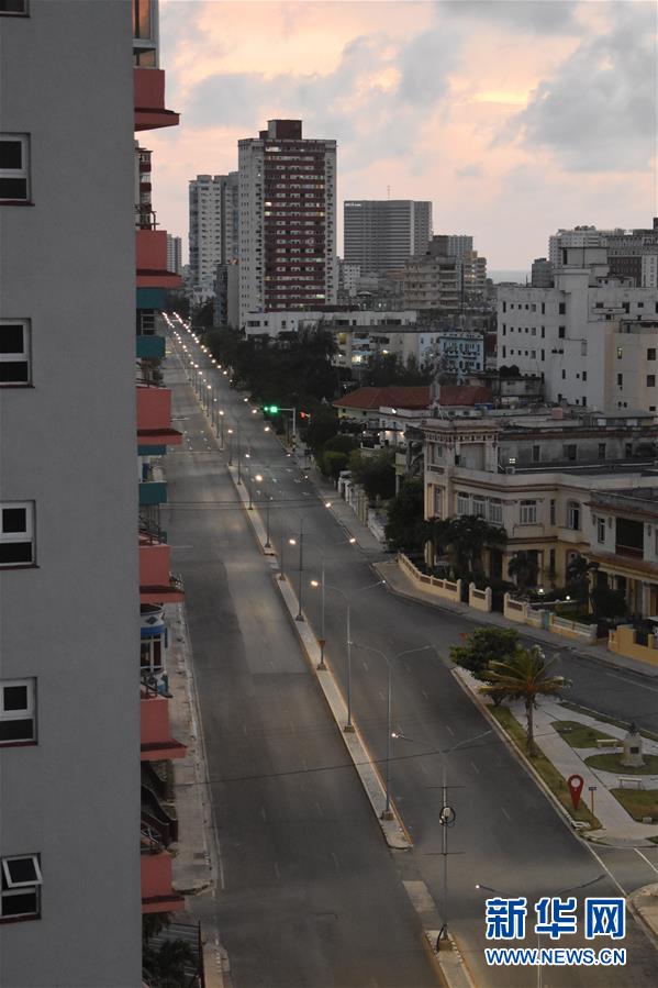 这是9月1日拍摄的宵禁中的古巴哈瓦那城区街道。 由于新冠疫情反弹后出现分散蔓延的特点,古巴哈瓦那从9月1日起,每天19时至次日5时实施宵禁,期间车辆、人员禁止外出。 新华社记者 朱婉君 摄