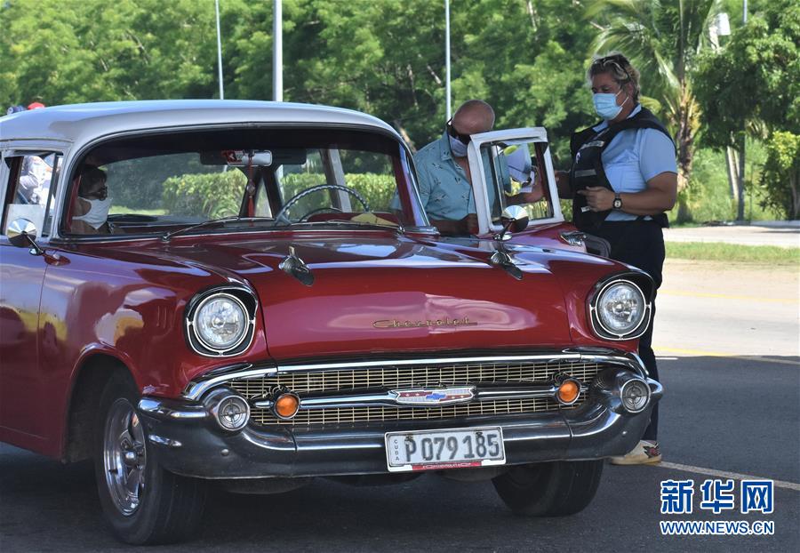 9月1日,在进出古巴哈瓦那的公路上一处检查点,车辆和人员接受相关检查。 由于新冠疫情反弹后出现分散蔓延的特点,古巴哈瓦那从9月1日起,每天19时至次日5时实施宵禁,期间车辆、人员禁止外出。 新华社记者 朱婉君 摄