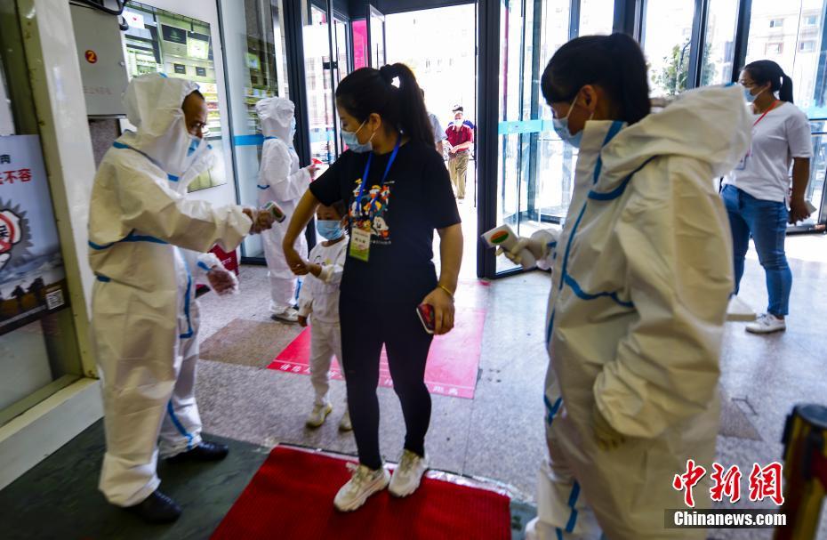 9月2日,新疆乌鲁木齐市青年路好家乡超市,民众经过消毒及测温后,进入超市购物。据介绍,该市各大商超正在按照复工复产的要求,进行全面消杀及货物调运工作,随后将陆续恢复营业。 中新社记者 刘新 摄