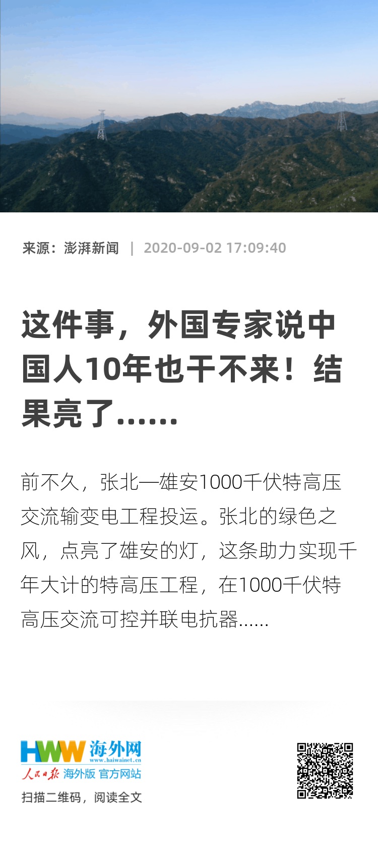 ▲张北—雄安1000千伏特高压输变电工程