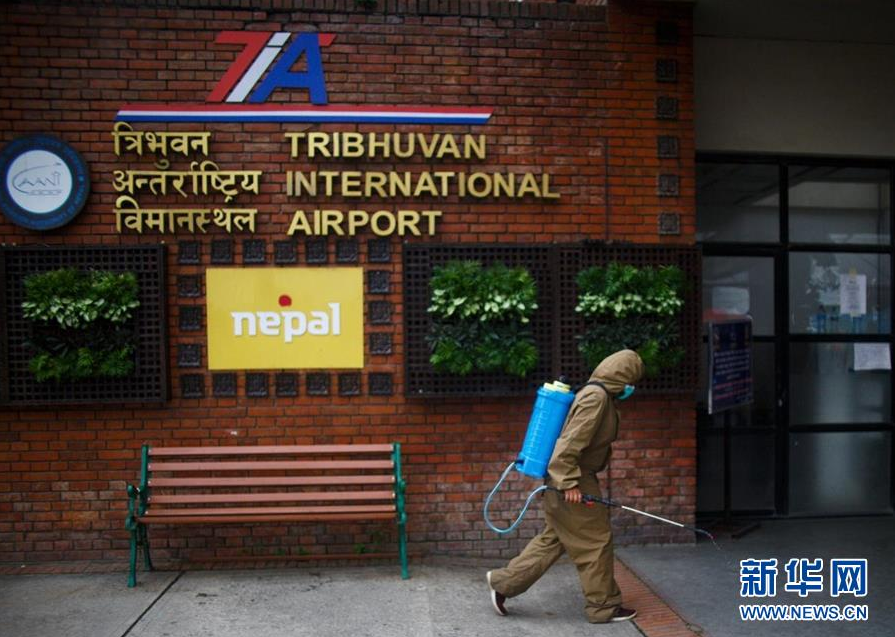 9月2日,一名工作人员在尼泊尔加德满都特里布万国际机场喷洒消毒液。 受疫情影响,尼泊尔于3月下旬暂停国际、国内商业客运航班服务。9月1日,尼泊尔开始有限恢复国际商业航班客运服务,允许特定国家和地区的特定人群入境,但暂时不允许游客入境。 新华社发(苏拉韦·什雷斯塔摄)
