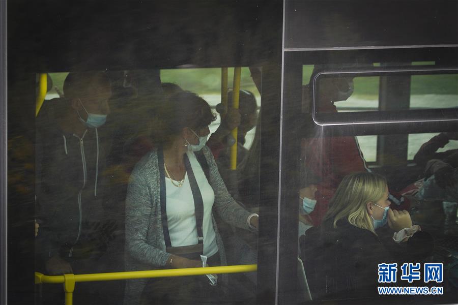 9月2日,在波兰华沙肖邦国际机场,戴口罩的旅客乘坐摆渡车。 为防控新冠疫情,波兰政府于9月2日起拒绝从美国、巴西、西班牙等44个国家起飞的航班入境。 新华社发(亚普·阿林斯摄)