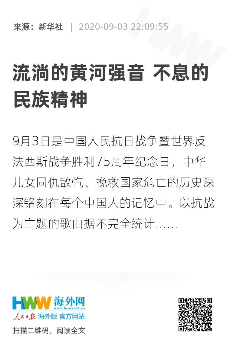 9月3日是中国人民抗日战争暨世界反法西斯战争胜利75周年纪念日,中华儿女同仇敌忾、挽救国家危亡的历史深深铭刻在每个中国人的记忆中。