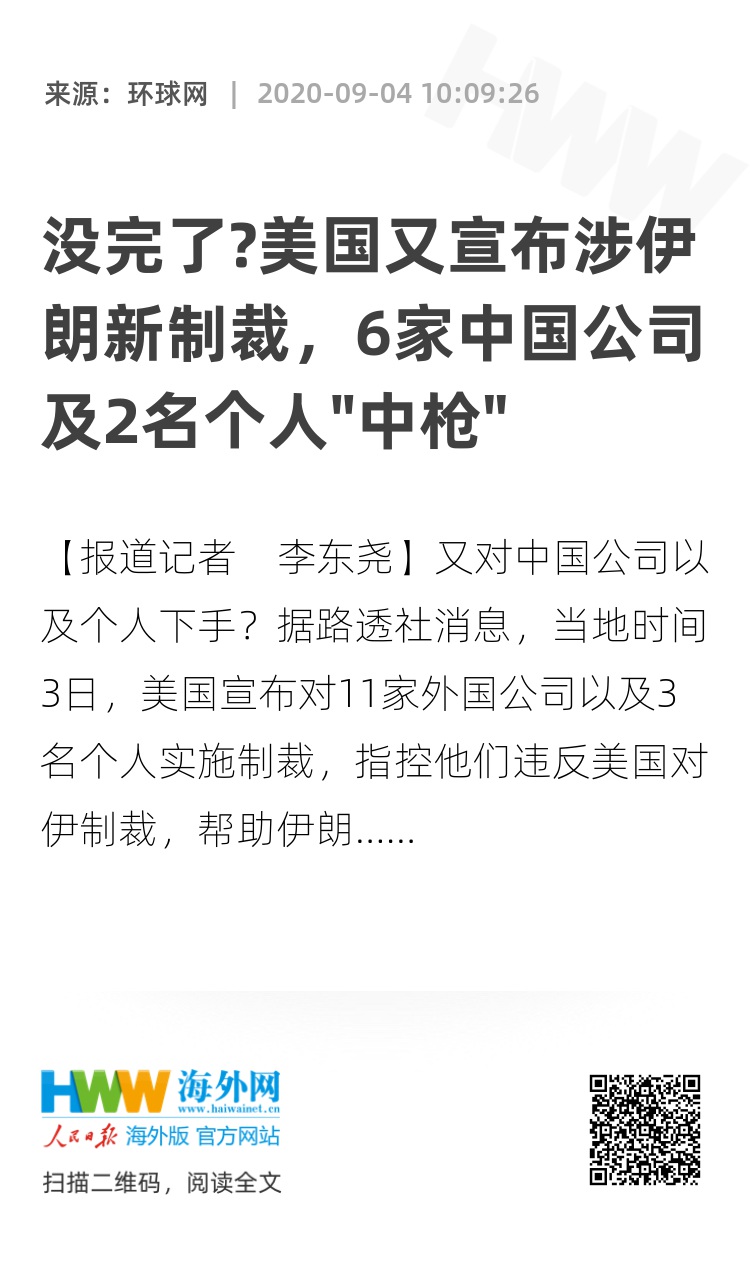 以与伊朗存在关联为由,美国此前曾多次对中国公司下黑手。今年5月,美国宣布对一家位于中国上海的物流公司实施制裁,据称这家公司与被美国列入黑名单的伊朗马汉航空有合作。对此,外交部发言人赵立坚在外交部例行记者会上曾强调,中方敦促美方立即取消相关非法制裁,并将坚定致力于维护本国企业的合法权益。