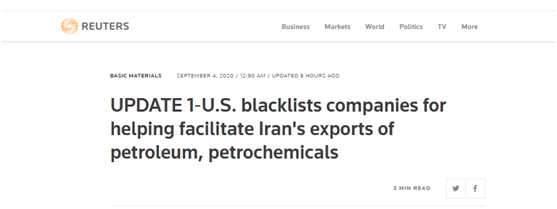 路透社报道:帮助伊朗出口石油和石化产品的公司被美国列入黑名单