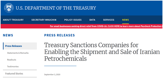 根据美国财政部发布的声明,美财政部已将来自伊朗、阿联酋以及中国的6家公司列入被制裁实体名单,理由是这些公司为伊朗的石油化工产品提供运输与销售渠道,并为之前已被制裁的众祥石化有限公司(Triliance Petrochemical Co. Ltd,总部位于香港)提供支持。
