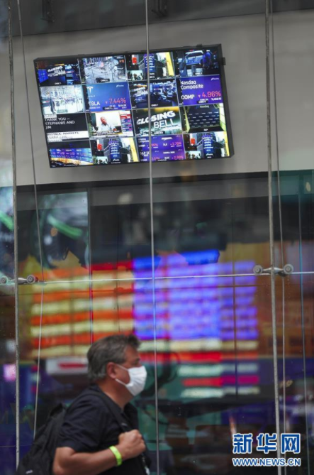9月3日,一名男子从美国纽约纳斯达克证券交易所的显示屏旁走过。 纽约股市三大股指3日大幅下跌。截至当天收盘,道琼斯工业平均指数下跌807.77点,收于28292.73点,跌幅为2.78%;标准普尔500种股票指数下跌125.78点,收于3455.06点,跌幅为3.51%;纳斯达克综合指数下跌598.34点,收于11458.10点,跌幅为4.96%。 新华社记者 王迎 摄