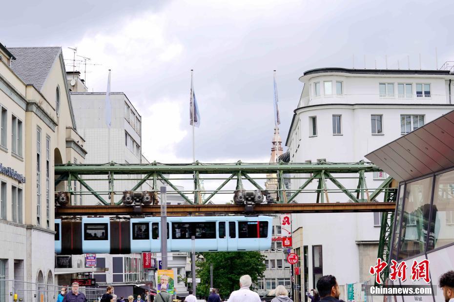德国伍珀塔尔市以恩格斯故乡而闻名于世,当地现存的全球最古老悬挂式单轨列车系统同样著名。这条悬空铁路于1901年通车,一百多年来已成为一道著名景观,也是当地人每天仍在使用的交通工具。图为悬挂式单轨列车系统。 中新社记者 彭大伟 摄