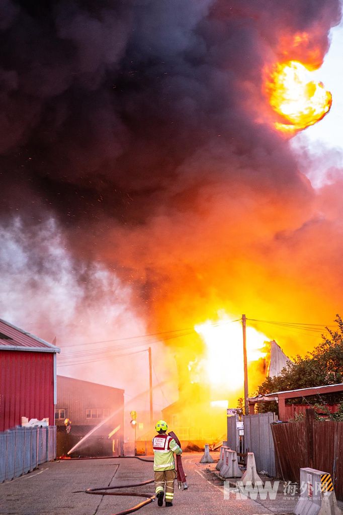 当地时间2020年9月4日,英国肯特郡一工厂发生爆炸起火,火势蔓延到周边住宅,数百人被紧急疏散。消防员赶到后工厂还发生二次爆炸,附近其他居民已被通知就地避难。官方消息称火灾仍未被扑灭,目前暂无人员伤亡。(供图:世界中国)