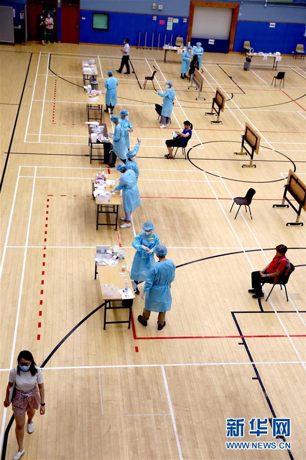 9月4日拍摄的香港士美非路体育馆检测中心检测现场。 当日,记者走进香港士美非路体育馆检测中心探访。香港新冠病毒普及社区检测计划9月1日正式开展,特区政府在全港各区设置了141个社区检测中心。 新华社记者 吴晓初 摄