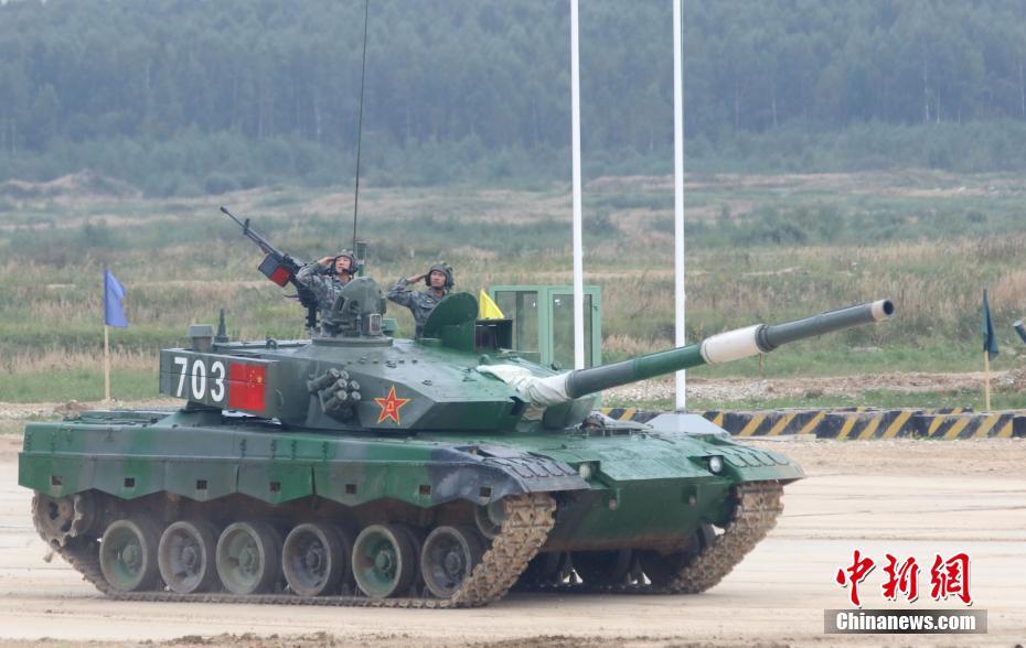 当地时间9月5日,中国队参加完“坦克两项”比赛后,车组人员探出身敬礼。“坦克两项”是“国际军事比赛”的最重要项目之一。当天“国际军事比赛-2020”在莫斯科郊外闭幕。 中新社记者 王修君 摄