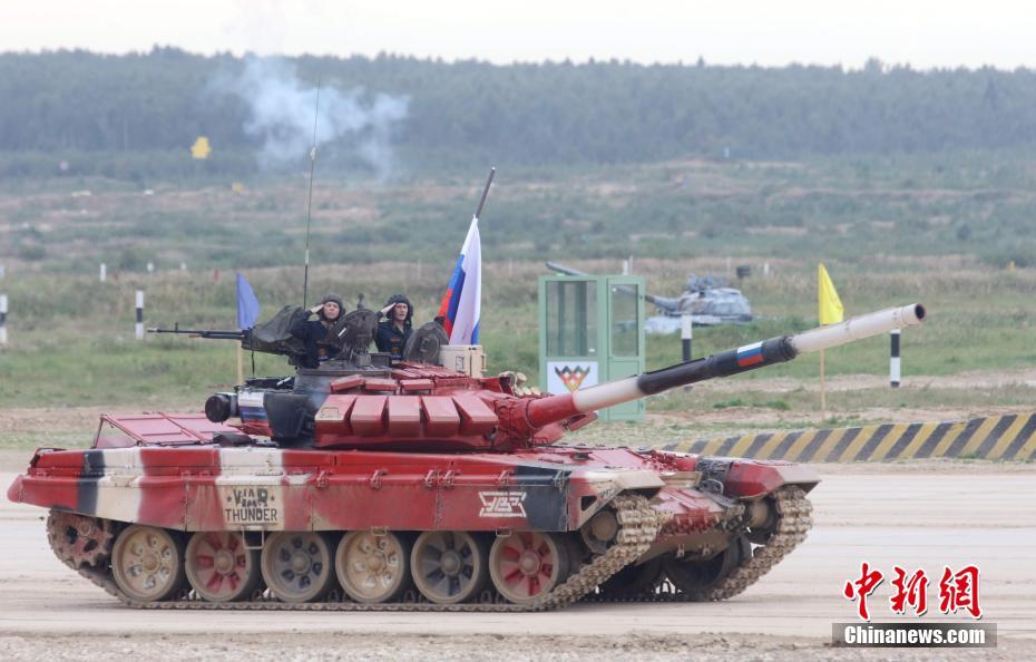 当地时间9月5日,俄罗斯队参加完“坦克两项”比赛后,车组人员探出身敬礼。“坦克两项”是“国际军事比赛”的最重要项目之一。当天“国际军事比赛-2020”在莫斯科郊外闭幕。 中新社记者 王修君 摄