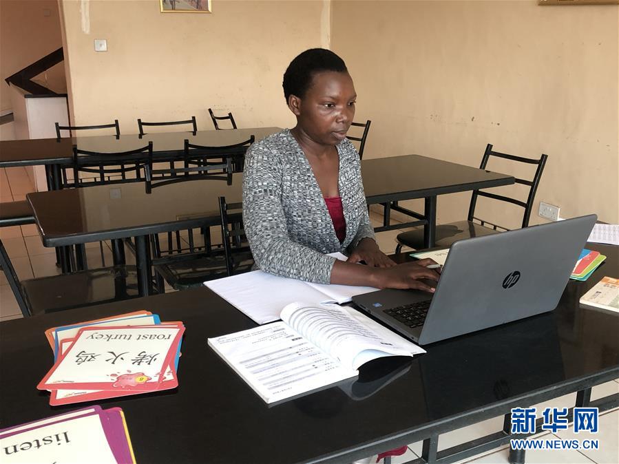 9月1日,中文教师娜奥米·穆宗加在津巴布韦首都哈拉雷的“妈妈的爱抚”高中备课。 新华社发(塔法拉·穆瓜拉摄)
