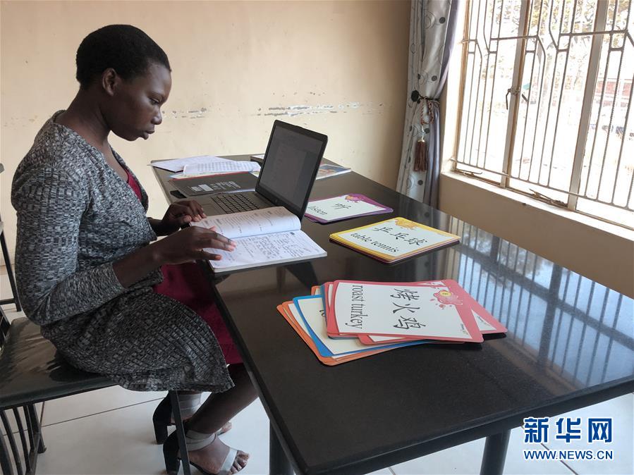 9月1日,中文教师娜奥米·穆宗加在津巴布韦首都哈拉雷的“妈妈的爱抚”高中备课。 新华社发(塔法拉·穆瓜拉摄)