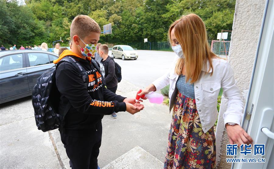 克罗地亚境内学校7日按政府要求正常开学,学校和师生均需遵守严格的新冠疫情防疫措施。 新华社发(科瓦契奇摄)