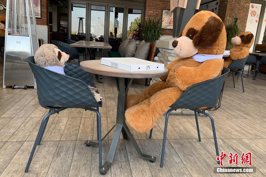 9月8日,南非约翰内斯堡,不少餐厅陆续重新营业。不过出于安全考虑,目前餐厅就餐人数并不多,餐厅摆放毛绒玩具充当食客、增加人气。 中新社记者 王曦 摄